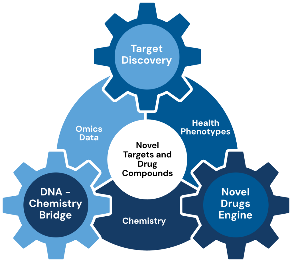 BluMaiden integrates (meta)genomics, chemistry, and human physiology into a unified framework. By combining advanced AI models with rich datasets, we uncover hidden molecular relationships and translate them into novel targets and small molecule therapeutic drug candidates.